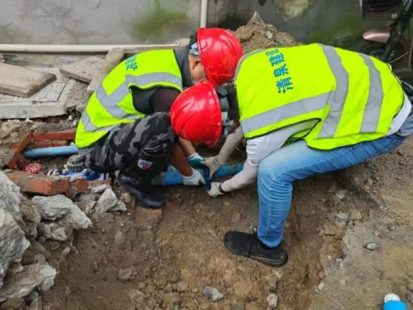 日前,“968008”水務(wù)熱線接到一起中山路的報(bào)修電話,水務(wù)集團(tuán)自來(lái)水公司工作人員現(xiàn)場(chǎng)勘察發(fā)現(xiàn)此段供水管道年久老化,管道受損漏水,周邊40多戶住戶陸續(xù)有水壓不穩(wěn)等情況,影響居民正常用水。確認(rèn)情況后,自來(lái)水公司立即組織搶修隊(duì)伍、做好個(gè)人疫情防護(hù)工作,迅速開(kāi)始管道施工。