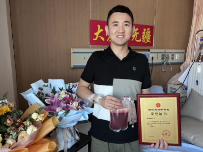 早在2021年周超然就已經(jīng)成功登記成為中國造血干細胞捐獻者資料庫的一員。2022年3月,正在疫情值崗的他突然接到了市紅十字會的電話,詢問他是否愿意為一名血液病患者捐獻造血干細胞,周超然毫不猶豫地答應了。2022年5月12日,市紅十字會、區(qū)紅十字會及水務集團專門為周超然舉辦了捐獻歡送儀式。5月17日上午,周超然成功完成了造血干細胞捐獻,為病患及其家庭帶去生活的希望。