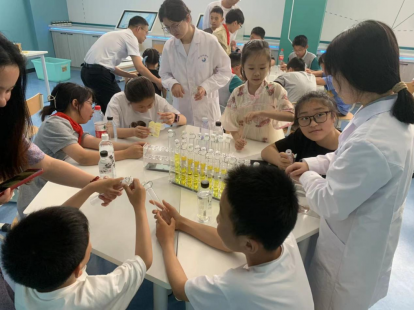 帶著疑問,工作人員帶領(lǐng)小朋友們一起開展了“水垢清除”“酸堿變色”“硬幣滴水”等趣味十足的小實驗,讓小朋友們沉浸式體驗了解水知識、水文化。