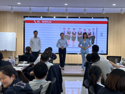 不學(xué)禮,無(wú)以立。楊老師從服務(wù)人員角色定位、服務(wù)意識(shí)和心態(tài)引出服務(wù)與禮儀形象的重要性,采用課堂理論教學(xué)與標(biāo)準(zhǔn)示范相結(jié)合的方式,根據(jù)窗口服務(wù)工作的職業(yè)特點(diǎn),邀請(qǐng)示范員進(jìn)行標(biāo)準(zhǔn)的禮儀展示,從細(xì)微處糾正日常容易被忽視的禮儀細(xì)節(jié),明確一線人員角色定位,提升責(zé)任意識(shí),樹立“為用戶提供優(yōu)質(zhì)服務(wù)是自己的本職工作”的基本理念。