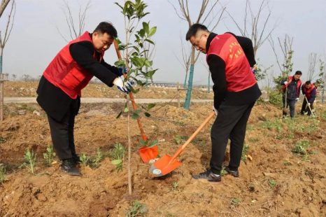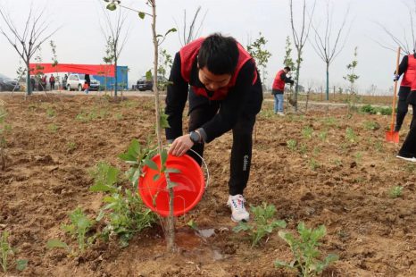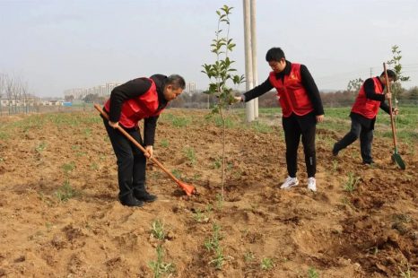 植樹現(xiàn)場氣氛熱烈,大家兩三人一組,配合默契,個個熱情洋溢、干勁十足。大家挖坑種樹、鏟土培實、澆水圍沿、扶苗壓實,每道工序都認真細致、一絲不茍,各個環(huán)節(jié)銜接有序,配合默契,處處是忙碌的身影。一番熱火朝天的勞動后,一棵棵新栽種的樹苗傲然挺立,在明媚的春光中展現(xiàn)勃勃生機,成為一道靚麗的風景線。