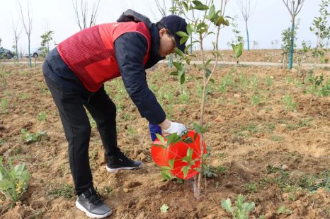 植樹現(xiàn)場氣氛熱烈,大家兩三人一組,配合默契,個個熱情洋溢、干勁十足。大家挖坑種樹、鏟土培實、澆水圍沿、扶苗壓實,每道工序都認真細致、一絲不茍,各個環(huán)節(jié)銜接有序,配合默契,處處是忙碌的身影。一番熱火朝天的勞動后,一棵棵新栽種的樹苗傲然挺立,在明媚的春光中展現(xiàn)勃勃生機,成為一道靚麗的風景線。